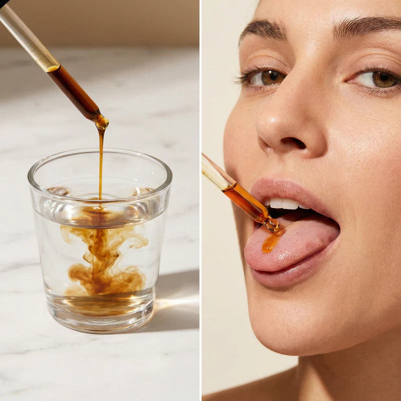 Diluer 1 à 2ml (l'équivalent d'une cuillère à café) dans un verre d'eau ou prenez directement sous la langue pour une absorption rapide.